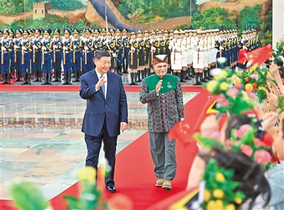 會(huì)談前,習(xí)近平在人民大會(huì)堂北大廳為奧爾塔舉行歡迎儀式。